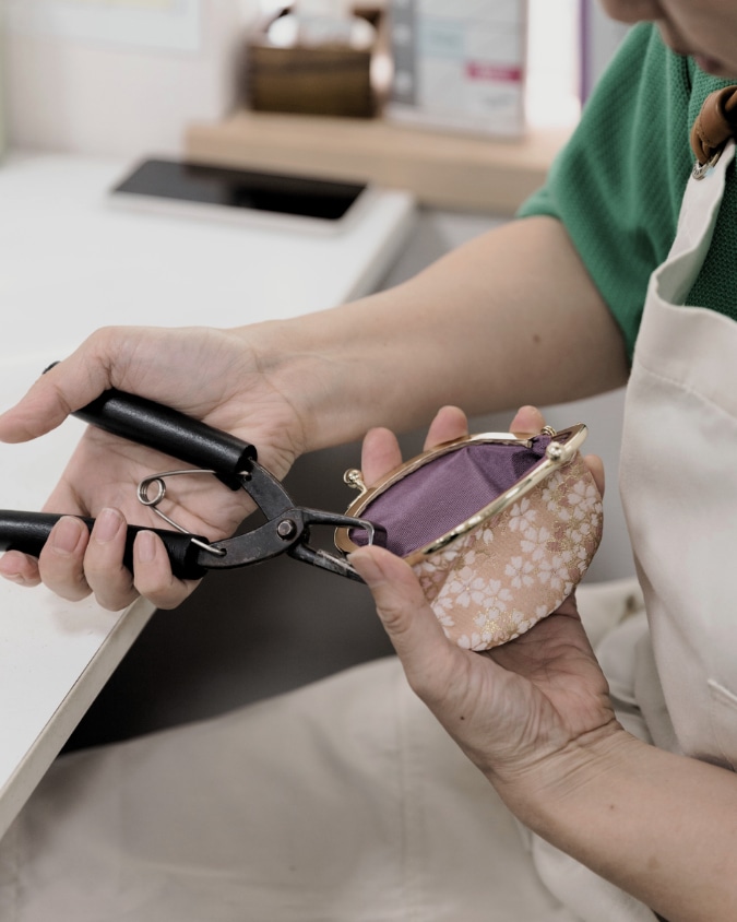 がま口の製品は、一つ一つ職人の手仕事で仕立てています。