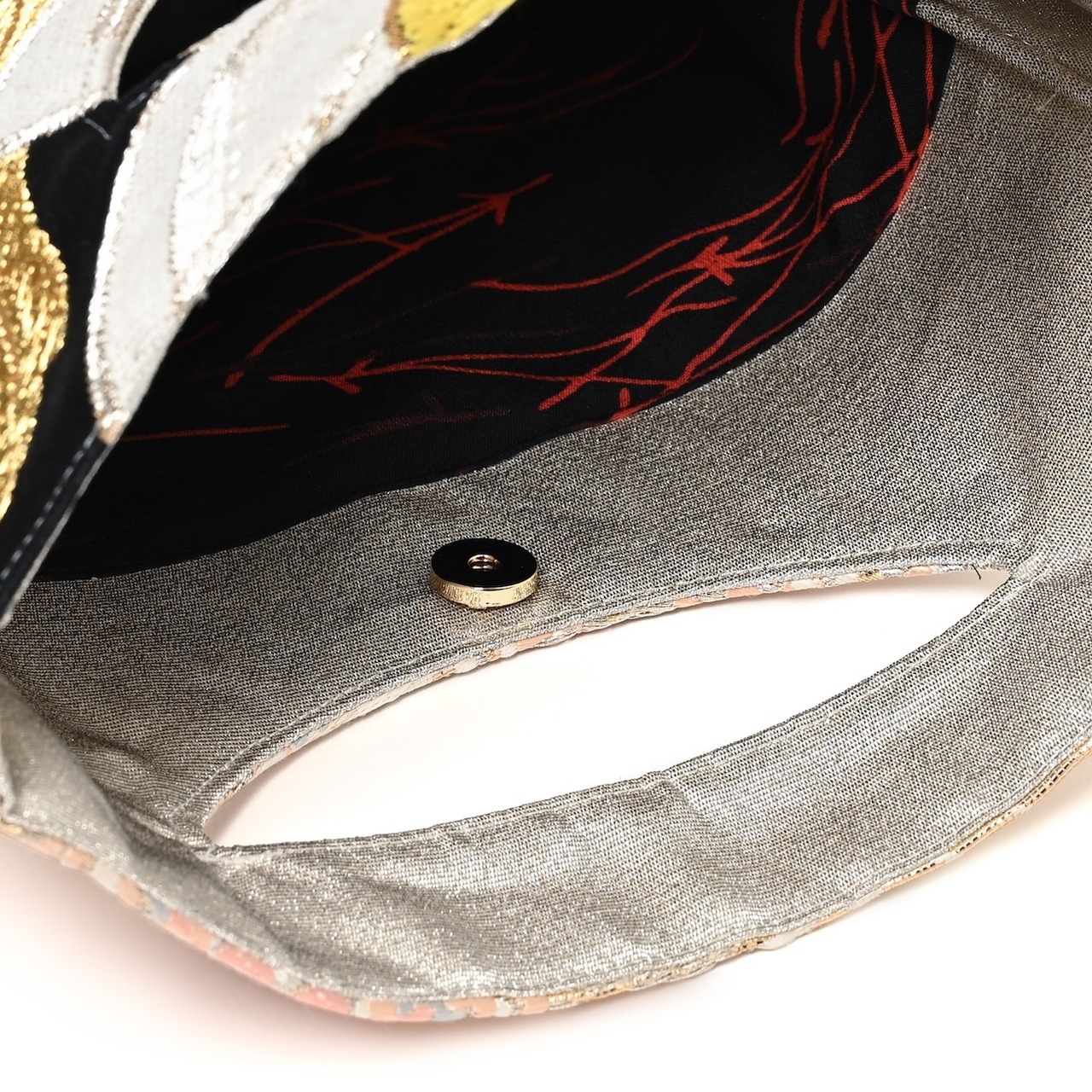 その着物の帯を活用し作られた、クラッチバッグ。