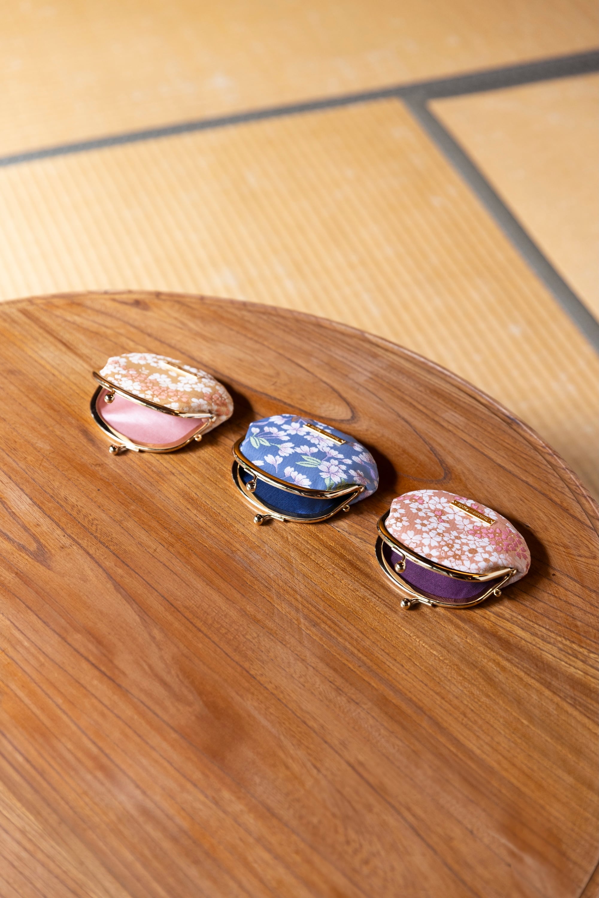 手に収まる、ころんとしたフォルムが愛らしい西陣織がま口財布。