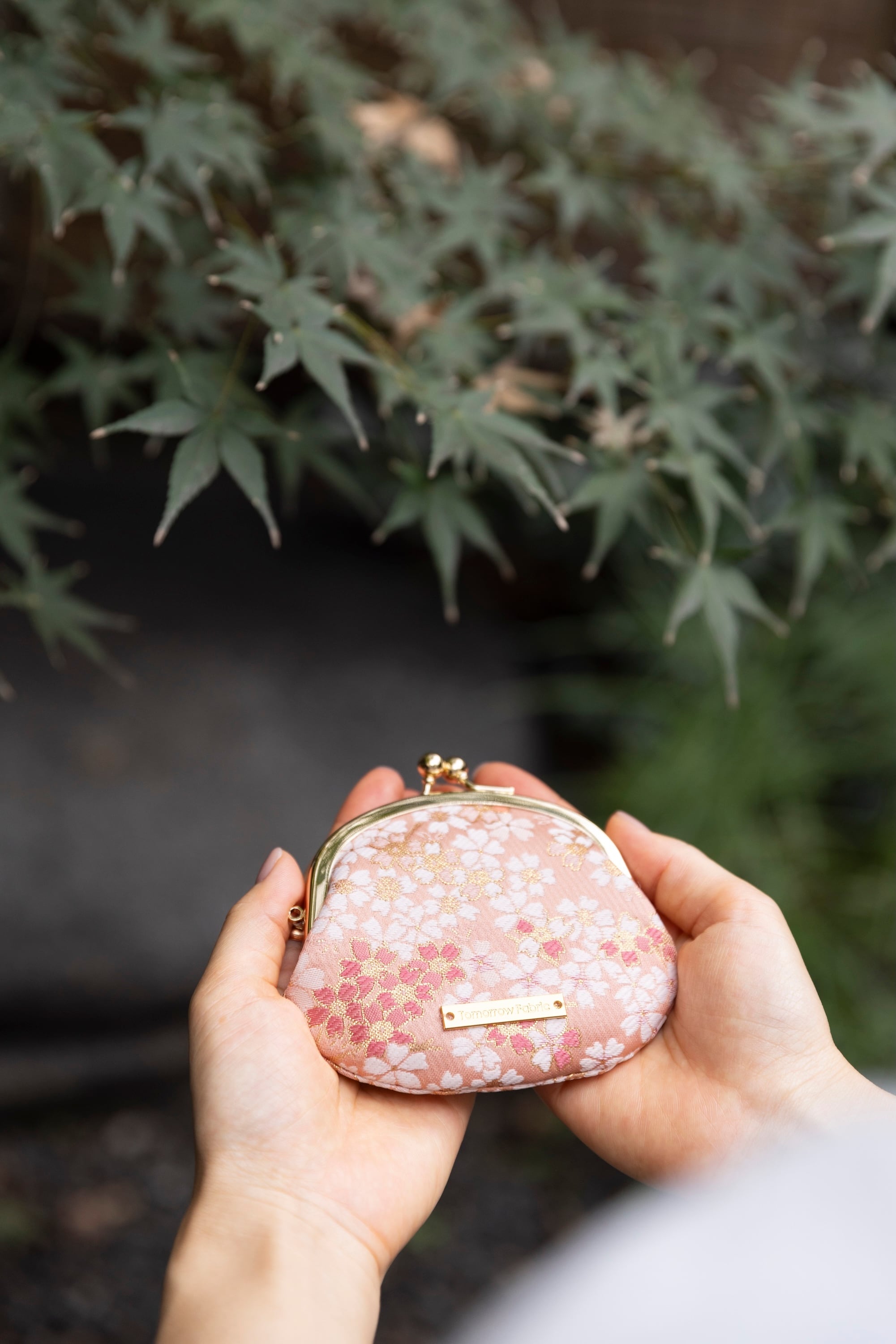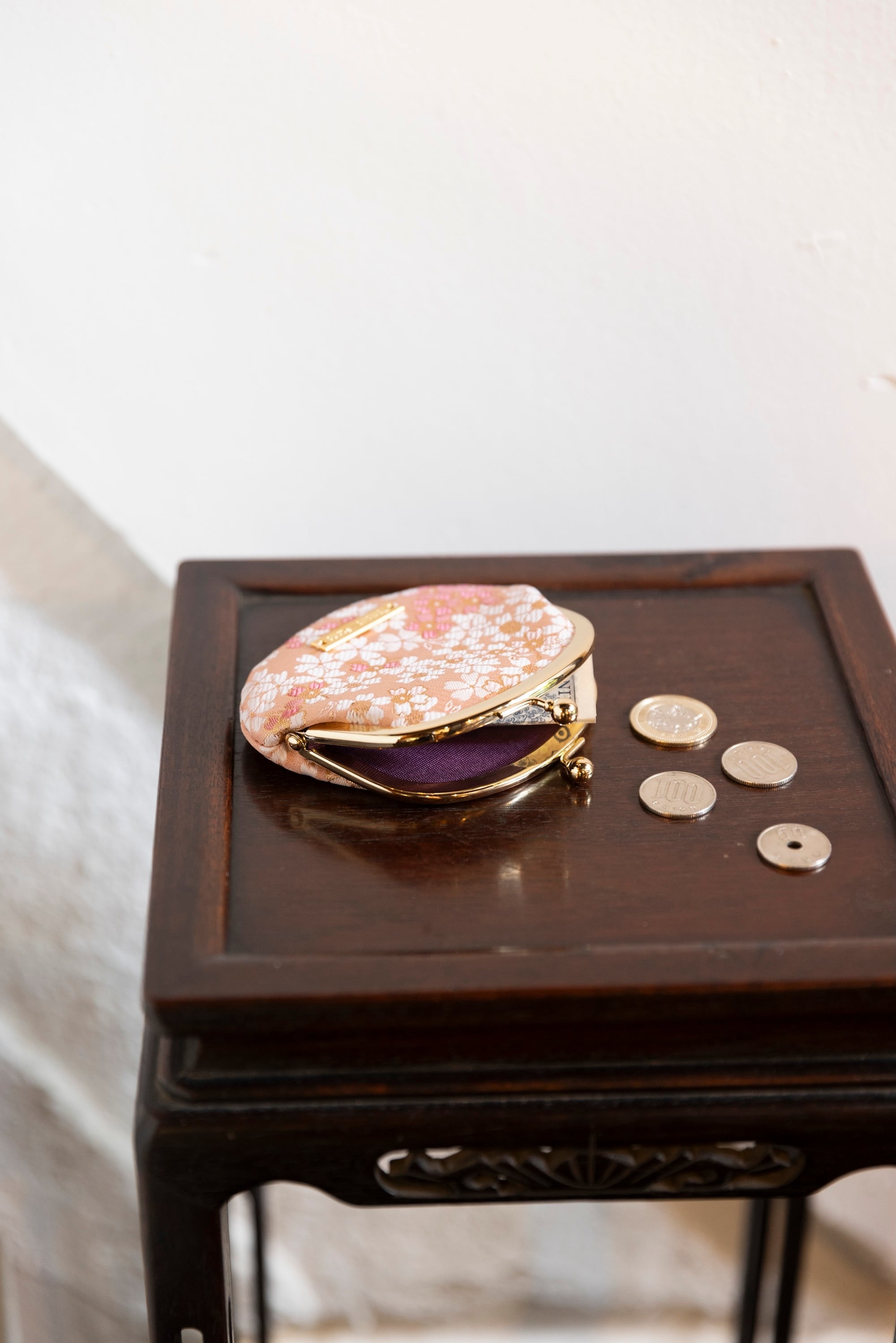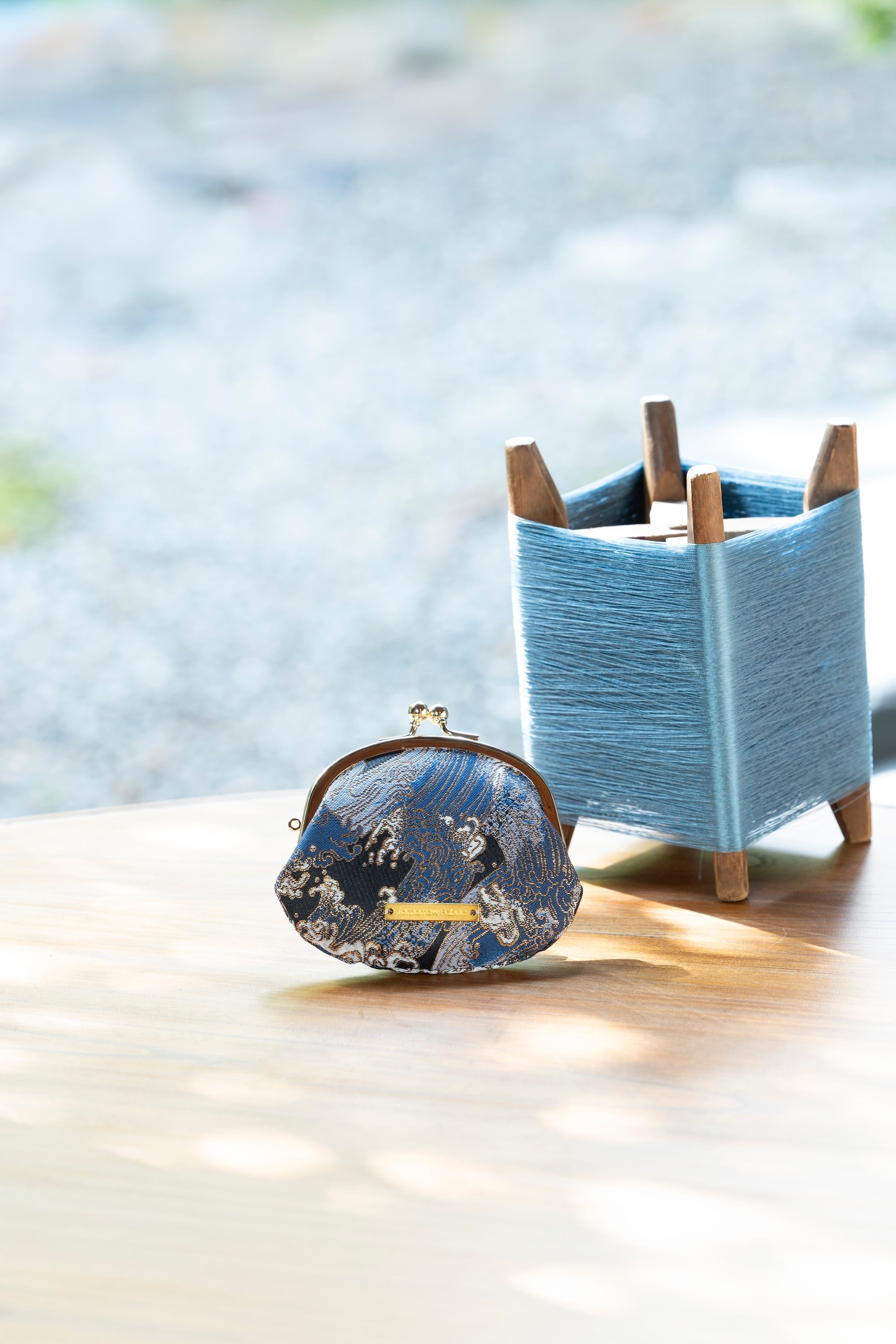 手に収まる、ころんとしたフォルムが愛らしい西陣織がま口財布。