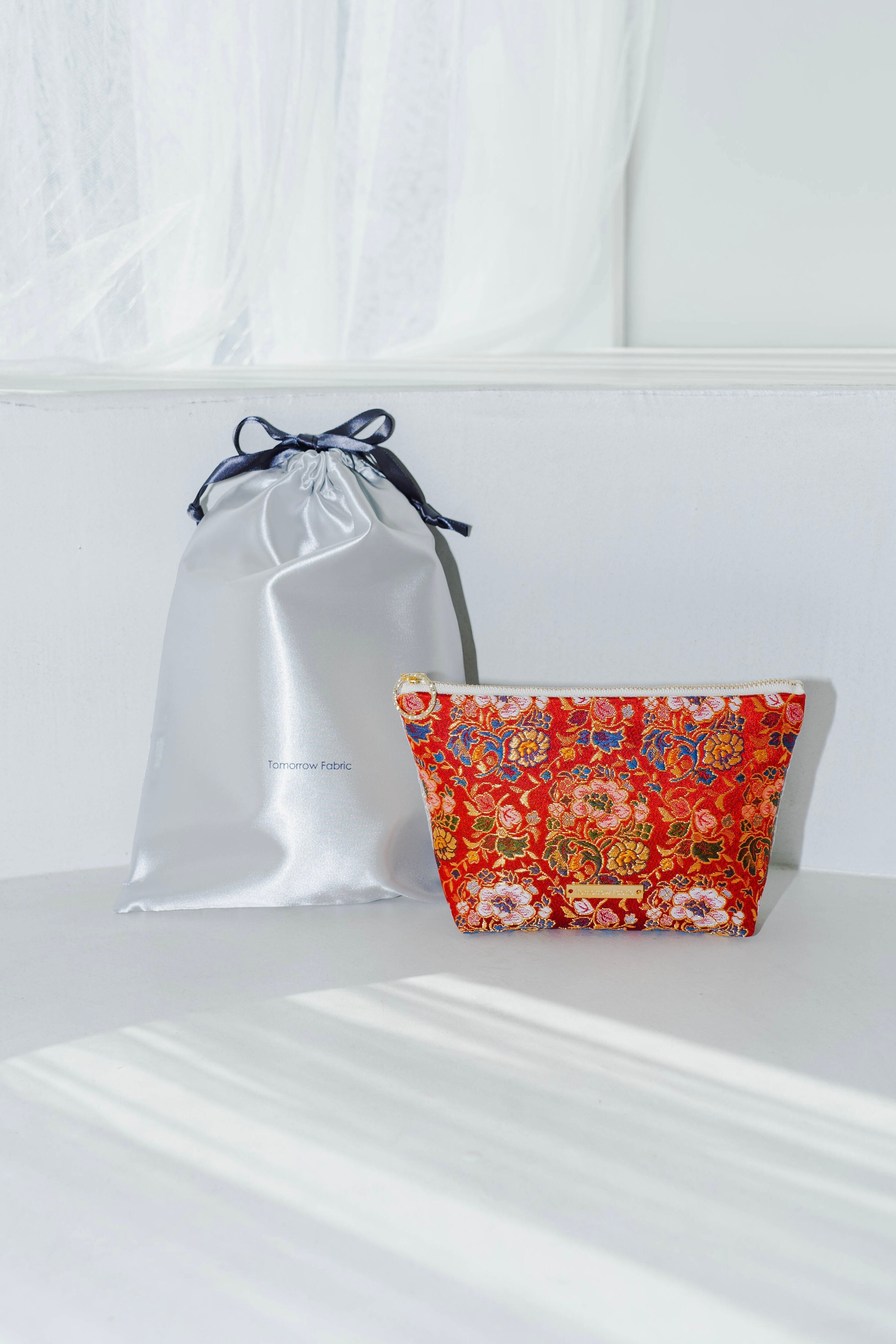 もらった後も使える、サテン巾着にお入れします。
