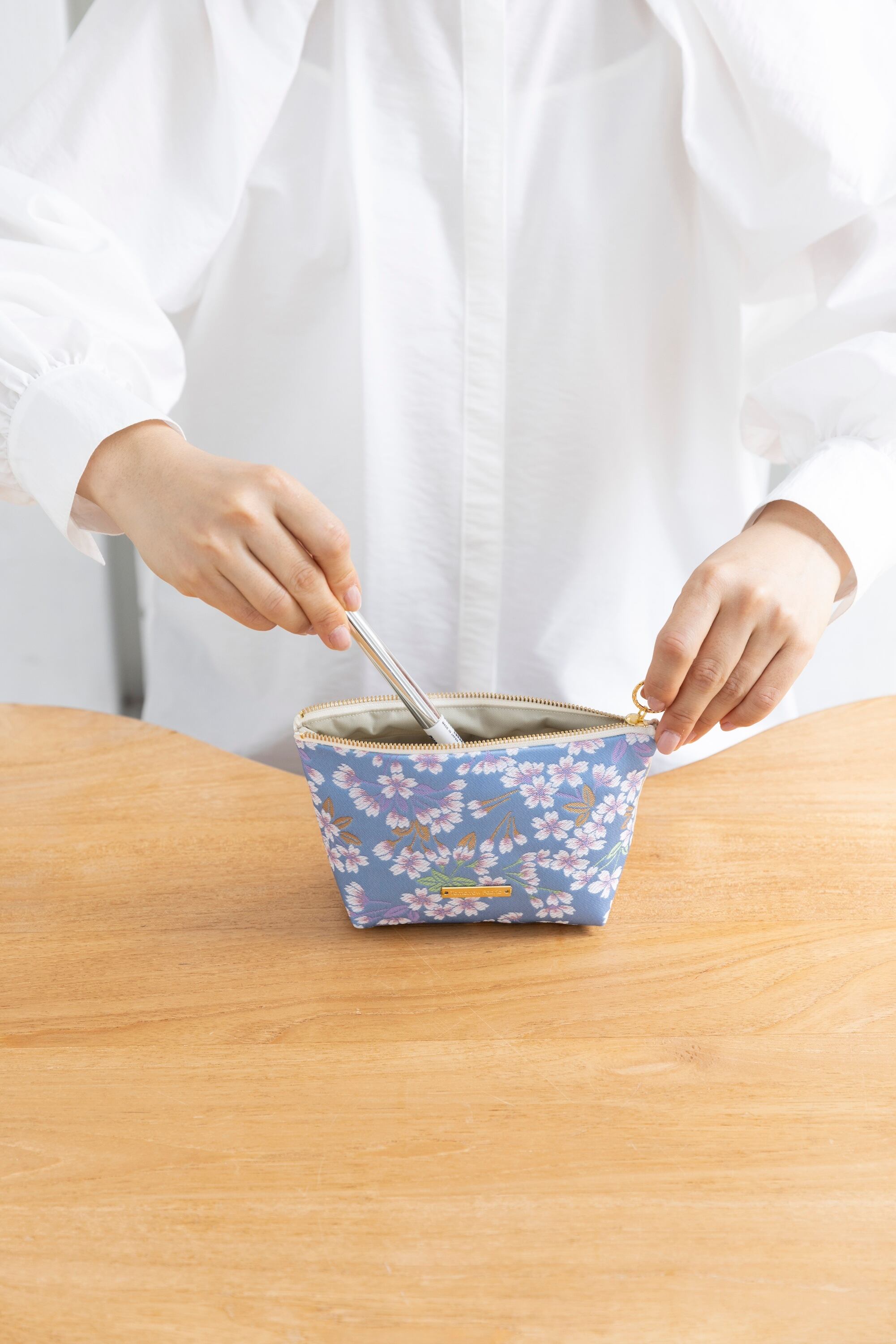 日常使いしやすい、自立型の西陣織ポーチL。