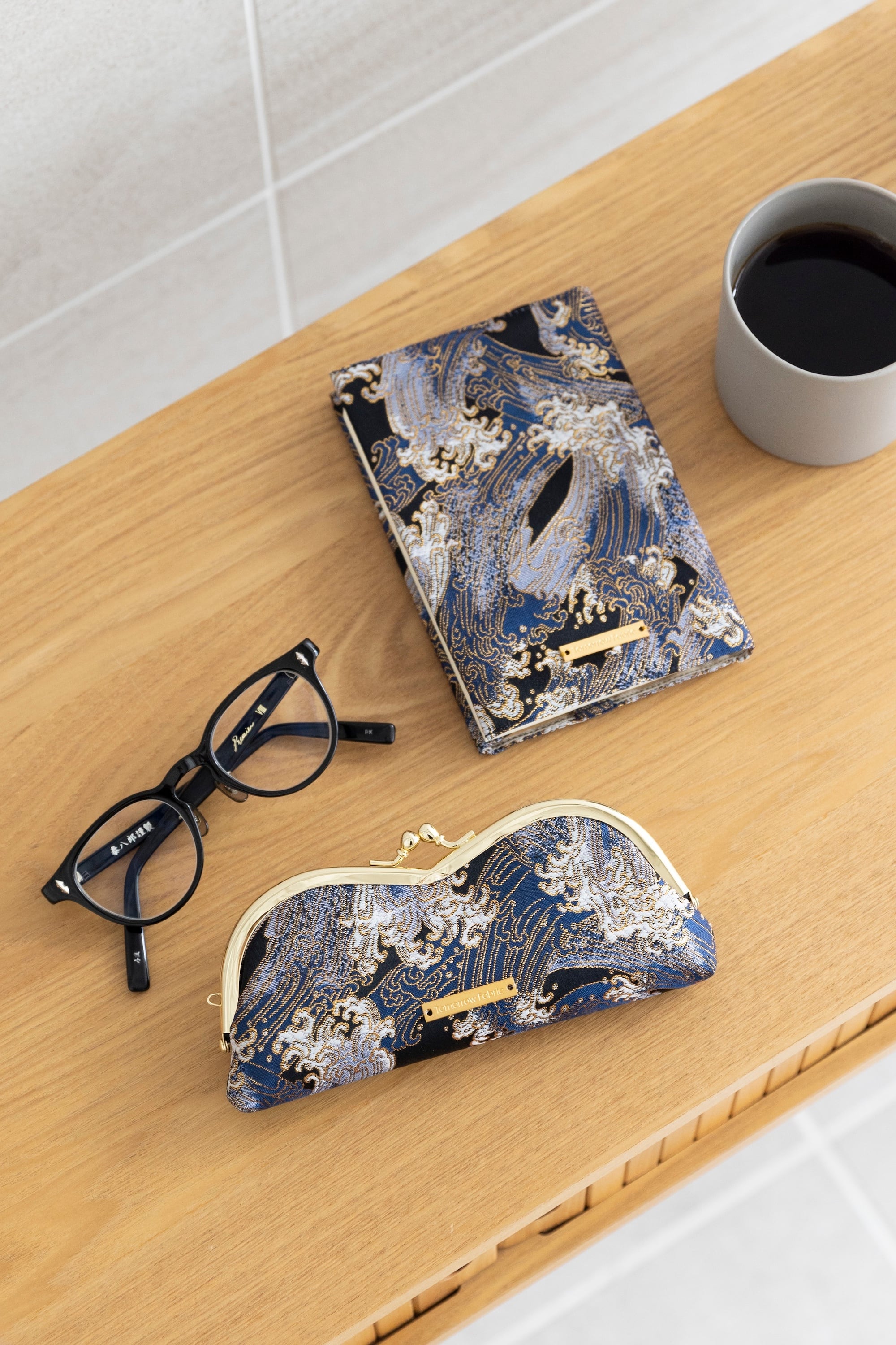 西陣織とがま口を組み合わせた、メガネケース。