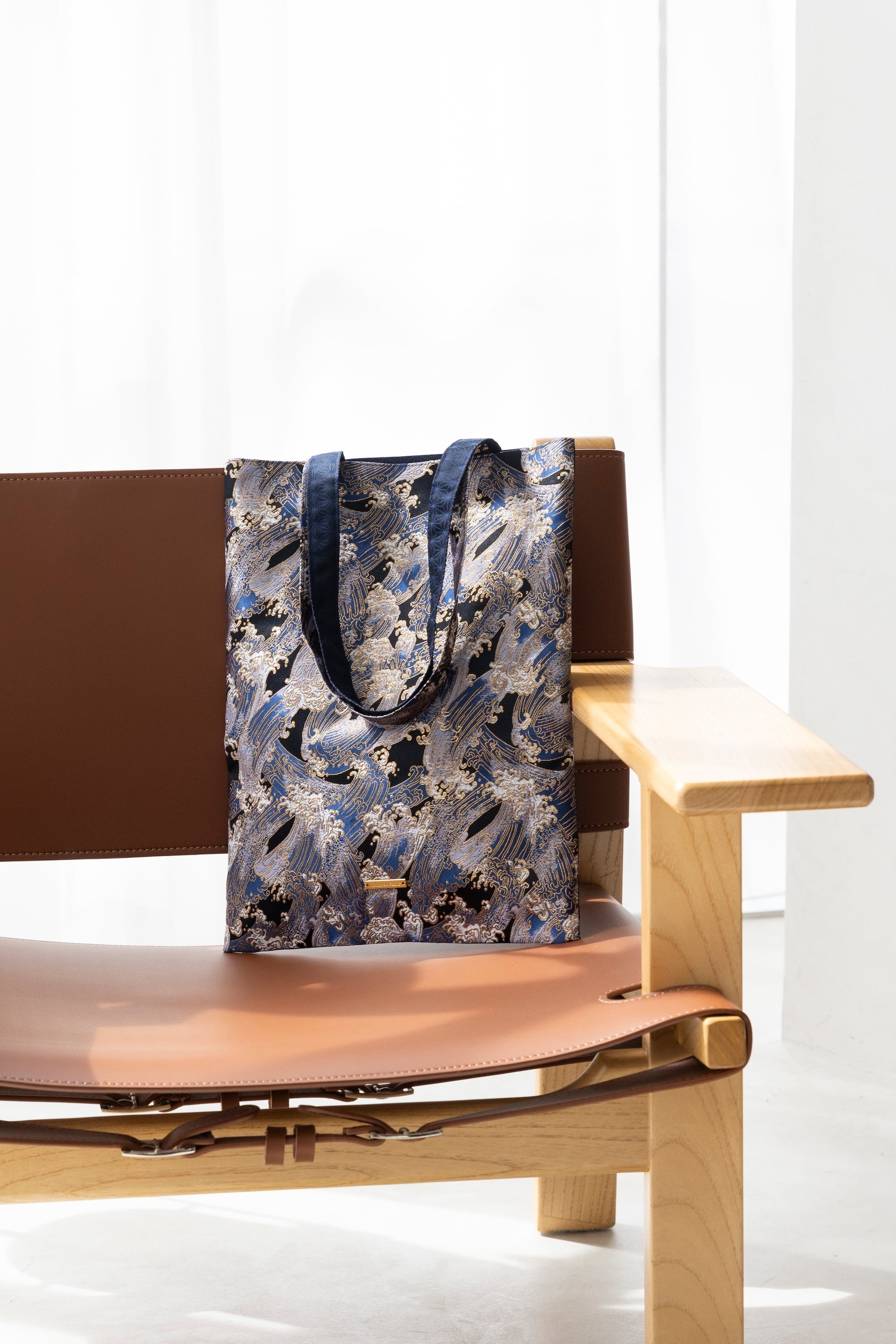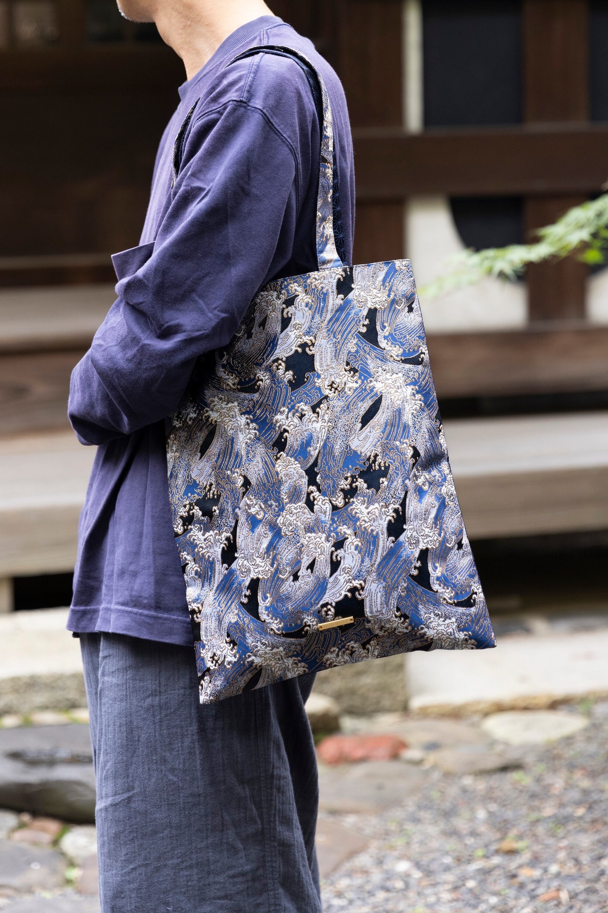 さまざまなシーンで活躍する、縦型の西陣織トートバッグ(A4サイズ収納可)。
