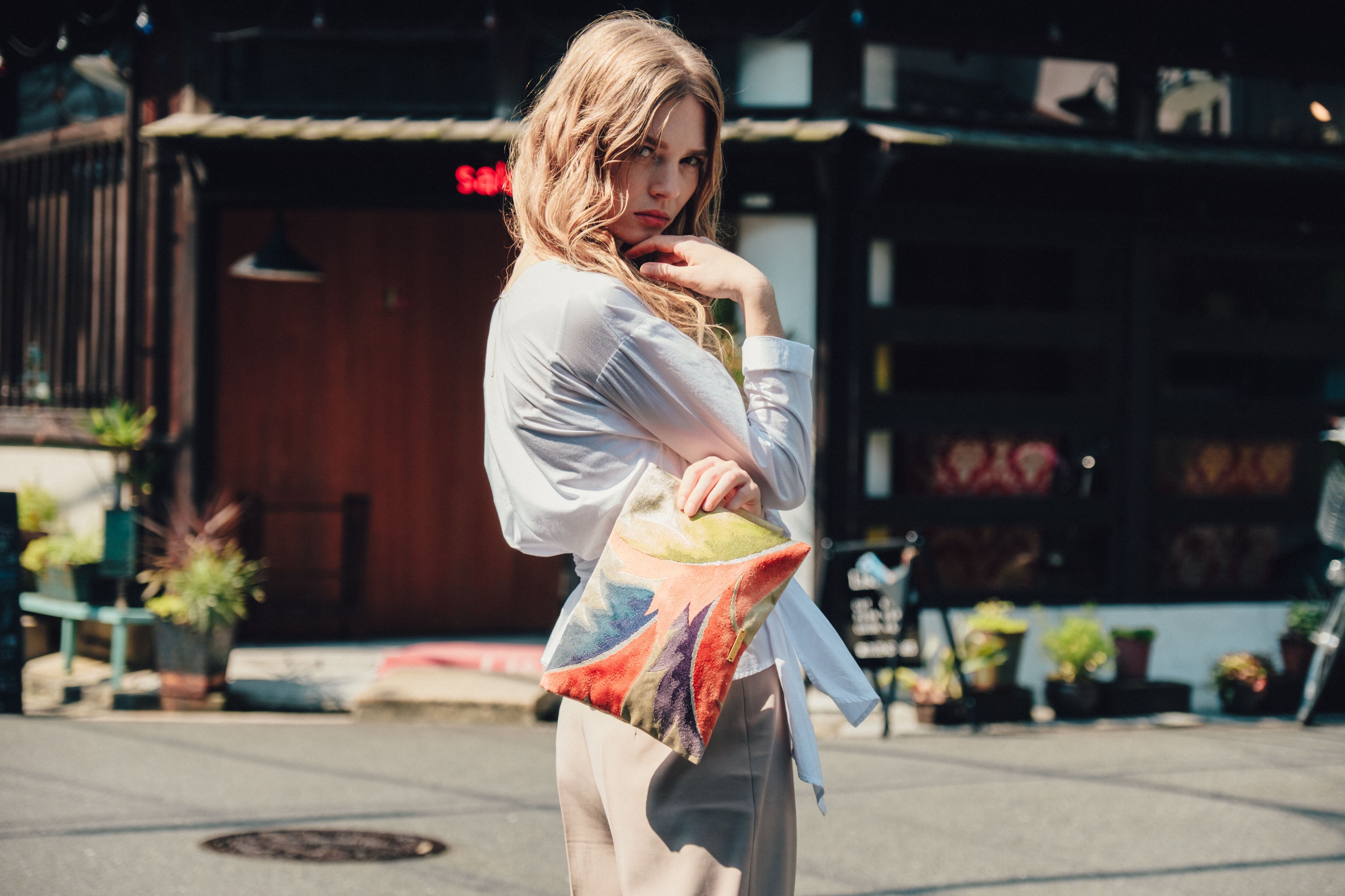 ・"Tomorrow Fabric"では、お客さまが商品の購入を検討される上で、できるだけ多くの商品写真、イメージ写真をご提供したいと考えております。商品によっては、実際の商品をモデルに持たせ、撮影をしております。また、一部の写真はバッグやポーチのサイズ等がわかりやすいよう、参考商品の写真を掲載しております。よりよい商品情報の提供のためですので、ご了承ください。
